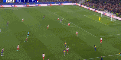 第45分钟,阿尔瓦雷斯直接任意球破门,马竞1-0巴萨!